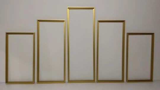 Eckverbinder,Rahmenprofile und Aufhänger.(ohne Glasscheibe) (2 Rahmen 26,3 x 47,6cm, 2 Rahmen je 26,3 x 59,8cm und 1 Rahmen 26,3 x 72cm),Profilbreite 12mm