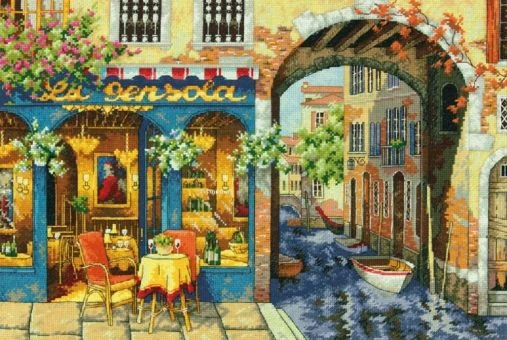 Bistro am Flüßchen – Ein Kreuzstich-Zählmotiv aus der Dimensions
