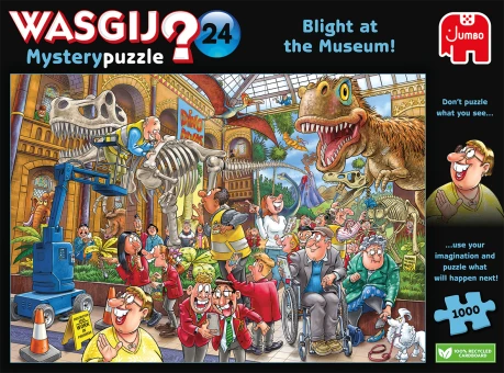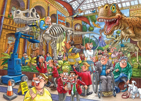 Diese imposanten Dinosaurier, die einst die Erde bevölkerten, stehen jetzt im Museum, wo Experten versuchen, ihre Skelette sorgfältig zu konservieren und möglichst furchterregend aussehen zu lassen. Wird die Ausstellung ein Erfolg, oder kann ein einziger dummer Fehler dazu führen, dass sogar die prähistorischen Ausstellungsstücke in Panik geraten? Lassen Sie Ihrer Fantasie den freien Lauf und nutzen Sie die Hinweise auf der Verpackung, um herauszufinden, was hier passieren wird. Das ist die Szene, die Sie puzzeln müssen.