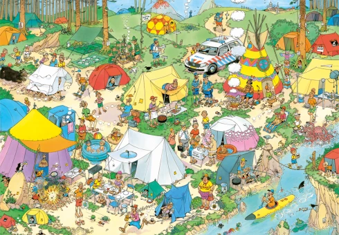 Jumbo 19087 Jan van Haasteren Camping im Wald 2000 Teile, Puzzle mit Comic Motiv: