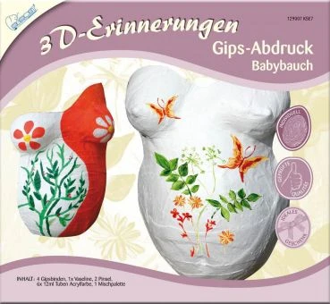 | Material | 4 Gipsbinden, 1 Dose Vaseline, 2 Pinsel, 6x 12ml Tuben Acrylfarbe, 1 Mischpalette |