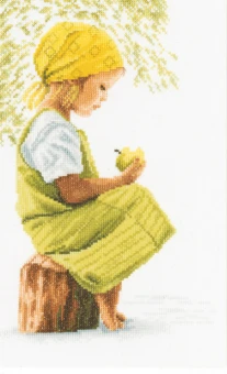 Lanarte PN-0021200 Mädchen Mit Apfel Kreuzstichpackung