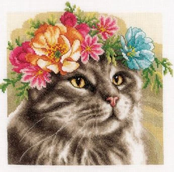 Lanarte PN-0189339 Kreuzstichpackung Katze Mit Blumenkrone