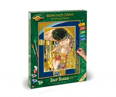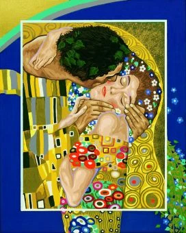 „Der Kuss“ nach Gustav Klimt (1862-1918). Hauptmeister des Jugendstils und weltberühmt für die Darstellung weiblicher Figuren.