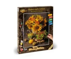 Die Packung für alle kreativen Malen-nach-Zahlen Künstler enthält einen stabilen, leinenstrukturierten Malkarton in der Größe 40 x 50 cm, und exakte Konturenzeichnungen mit gut lesbaren Zahlen. Die Acrylfarben sind auf Wasserbasis malfertig gemischt. Es ist daher kein Farbmischen erforderlich. Auch Zahlenaufkleber, ein Synthetikhaarpinsel mit Pflegeanleitung und ein Kontrollblatt zum Auffinden bereits übermalter Flächen sind beigefügt. Die ausführliche Malanleitung gibt viele Tipps für erfolgreiches Malen.