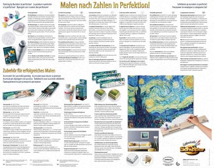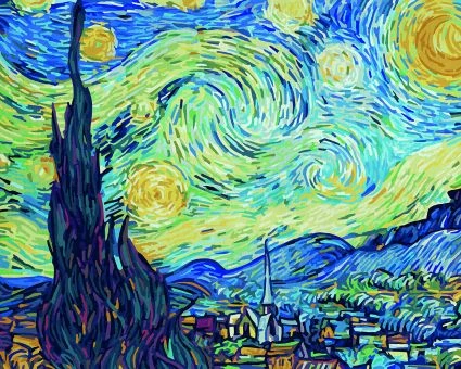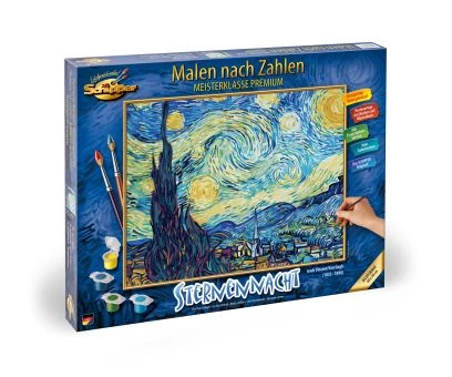 Der Künstler Vincent van Gogh gilt als ein Wegbereiter der modernen Malerei. Typisch für seine Gemälde sind neben der besonderen Art der Pinselführung, die intensiven Farben. „Sternennacht“ zählt zu seinen bekanntesten Werken. Es entstand 13 Monate vor seinem Tod in einer Nervenheilanstalt. Mit der Malen-nach-Zahlen-Technik wird dieses faszinierende Meisterwerk auch für Hobbymaler zu einem begehrenswerten Motiv.