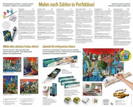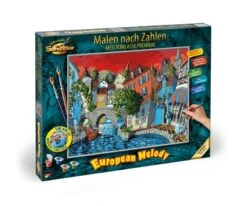 Der Titel des Bildes „European Melody“ steht für Harmonie und Vielfalt der Kulturen und Landschaften in Europa. In dem Bild finden sich daher typische Merkmale aus den unterschiedlichen Ländern Europas. Die pittorreske Darstellung einer kleinen Stadt, die Dynamik der perspektivischen Verzerrung, sowie die eindrucksstarken Farben von Miguel Freitas, verschmelzen zu einem „melodischen“ Gesamtkunstwerk mit großer Strahlkraft. Ein Meisterwerk, das gerade für den Hobbymaler viel Malspaß verspricht.