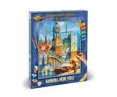 Stabiler Malkarton mit Leinenstruktur Stabile 40 x 50 cm. Exakte Konturenzeichnungen mit gut lesbaren Zahlen. Acrylfarben auf Wasserbasis. Kein Farbmischen erforderlich. Feiner Malpinsel. Kontrollblatt und ausführliche Anleitungen für erfolgreiches Malen.