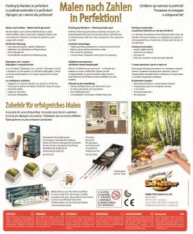 Stabiler Malkarton mit Leinenstruktur 24 x 30 cm. Exakte Konturenzeichnungen mit gut lesbaren Zahlen. Acrylfarben auf Wasserbasis. Kein Farbmischen erforderlich. Feiner Malpinsel. Kontrollblatt und ausführliche Anleitung für erfolgreiches Malen.