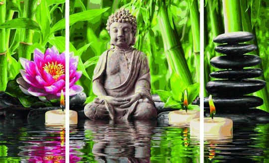 Gemälde fortsetzt. Der kleine Buddha strahlt Ruhe und Zufriedenheit