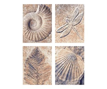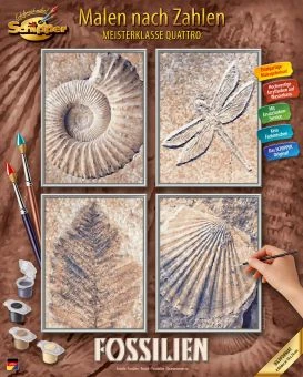 Die Ausgrabungen versteinerter Pflanzen und Tiere aus der frühen Erdgeschichte haben auf die Menschen schon immer eine große Faszination ausgeübt. Das Bildmotiv zeigt besonders interessante und schöne Exemplare dieser von der Natur im Laufe von Jahrmillionen geschaffenen „fossilen Kunstwerke“. Über das Hobbymalen werden die Zeugnisse aus der Urgeschichte unseres Planeten zu einem attraktiven Wandschmuck.