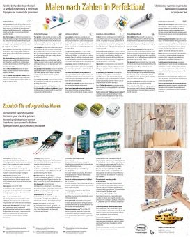 - Feiner Malpinsel. Pinselreinigung mit klarem Wasser. Die Anzahl der Farben ist abhängig vom gewählten Motiv.