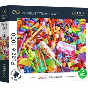 Trefl Prime UFT-Puzzles, die aus 1000 Teilen bestehen, sind echten Puzzle-Liebhabern gewidmet. Das Puzzle präsentiert bunte und leckere Lollies & Bonbons. Nach dem Verlegen entsteht ein Gemälde mit den Maßen 683×480 mm. Die Puzzles werden aus hochwertigen Materialien aus dickstem Karton, einzigartigen Formen und einer speziellen Schneidemethode hergestellt. Dadurch können wir eine individuelle Collage erstellen und das gesamte Puzzle leicht verschieben. Darüber hinaus sind die einzelnen Komponenten der UFT-Produkte aus ökologischen Materialien gefertigt. Der Rutschenbeutel und die Aufkleber auf der Schachtel bestehen aus biologisch abbaubarer Folie. Die Produkte sind nicht in Schrumpffolie eingewickelt.