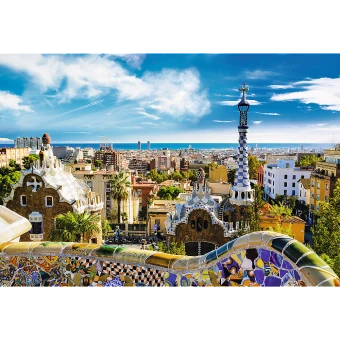 Puzzle 1500 Teile mit einem herrlichen Blick auf den Park Güell in Barcelona.