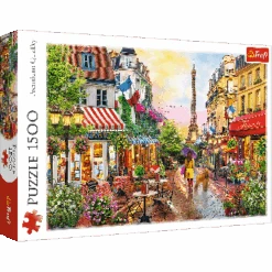 Der Charme von Paris ist ein Puzzle, das aus 1.500 Teilen besteht und einen gemalten Blick auf eine der Straßen der französischen Hauptstadt zeigt. Nach dem Anordnen ist das Bild 850 x 580 mm groß. Hohe Qualität, Farbsättigung und sichere Verlegung werden durch die Verwendung ökologischer Materialien gewährleistet.