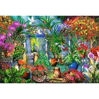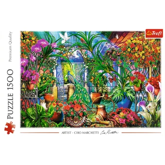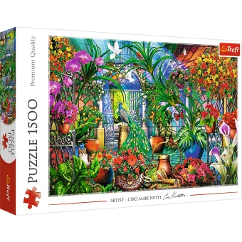 Puzzle bestehend aus 1500 Elementen, die einen mysteriösen Garten darstellen. Nach dem Verlegen wird ein Bild mit Maßen von 85x58cm erstellt.