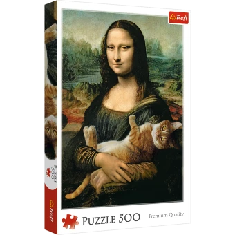 Puzzle 500 Teile mit einem lustigen Bild der Mona Lisa und der Katze Mruczek