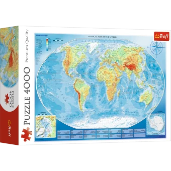 Puzzle aus 4000 Teilen mit der aktuellen, großen, physischen Weltkarte.