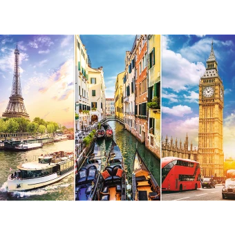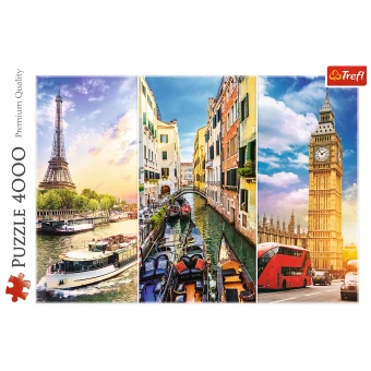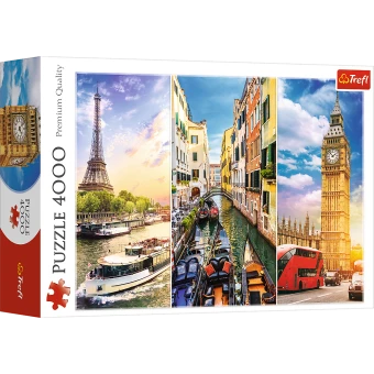 Das Puzzle besteht aus 4000 Teilen, die eine Collage von Ansichten aus europäischen Städten – Paris, Venedig und London – darstellen. Das Produkt besteht aus hochwertigen Materialien unter Verwendung eines speziellen kalandrierten lichtreflektierenden Papiers, das das Verlegen erleichtert.