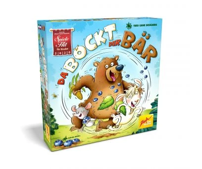 Beim „Querfeldeinschlemmen“ futtern sich Bär, Bock und Maus, auf einer Spielfigur vereint, dem Ziel entgegen. Welches Tier dabei den Schritt vorgibt, entscheiden ausgerechnet die